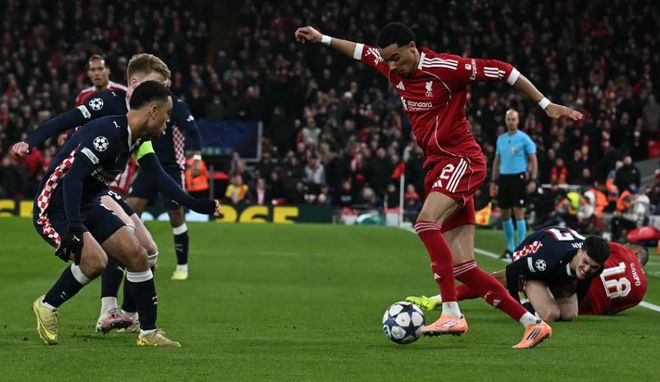 主场面对埃因霍温,利物浦开场仅仅4分钟送了点球,来自范戴克禁区内高高举手挡下了皮球,佩里西奇主罚点球命中,帮助埃因霍温1-0领先。第16分钟,加克波打门被扑出之后,索博斯洛伊补射破门,帮助利物浦1-1扳平比分。